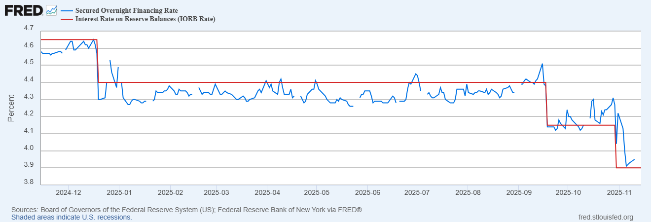 Moreover, tight liquidity also weighed on sentiment. The Secured Overnight Financing Rate (SOFR) remains elevated above the Interest on Reserve Balances (IORB), indicating continued stress in financial markets.