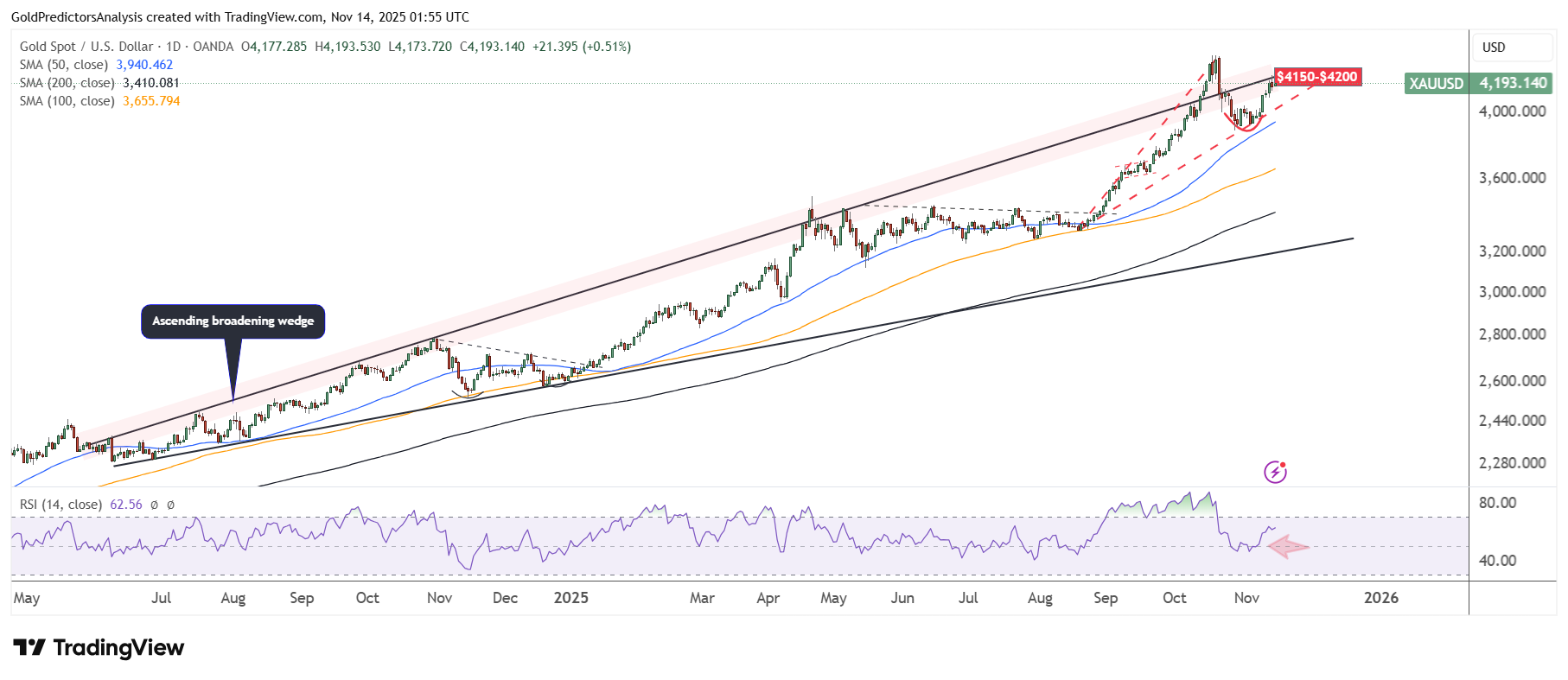 XAUUSD Daily Chart – Ascending Broadening Wedge