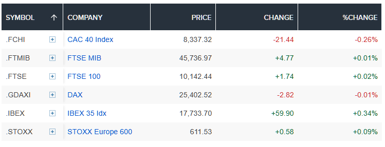 Elsewhere, Swiss lender UBS was 0.7% higher after the Financial Times reported its CEO Sergio Ermotti will step down in April 2027. A spokesperson for the bank declined to comment.