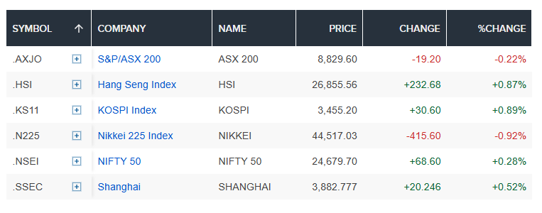 Overnight in the U.S., the S&P 500 closed up 0.41% at 6,688.46, while the Nasdaq Composite climbed 0.31% to finish at 22,660.01.